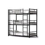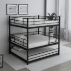 BUNK BED-002 is a robust triple-layered bunk bed designed to maximize vertical space in high-occupancy areas. Perfect for hostels, dorms, and staff accommodations, this model combines utility with modern industrial design.