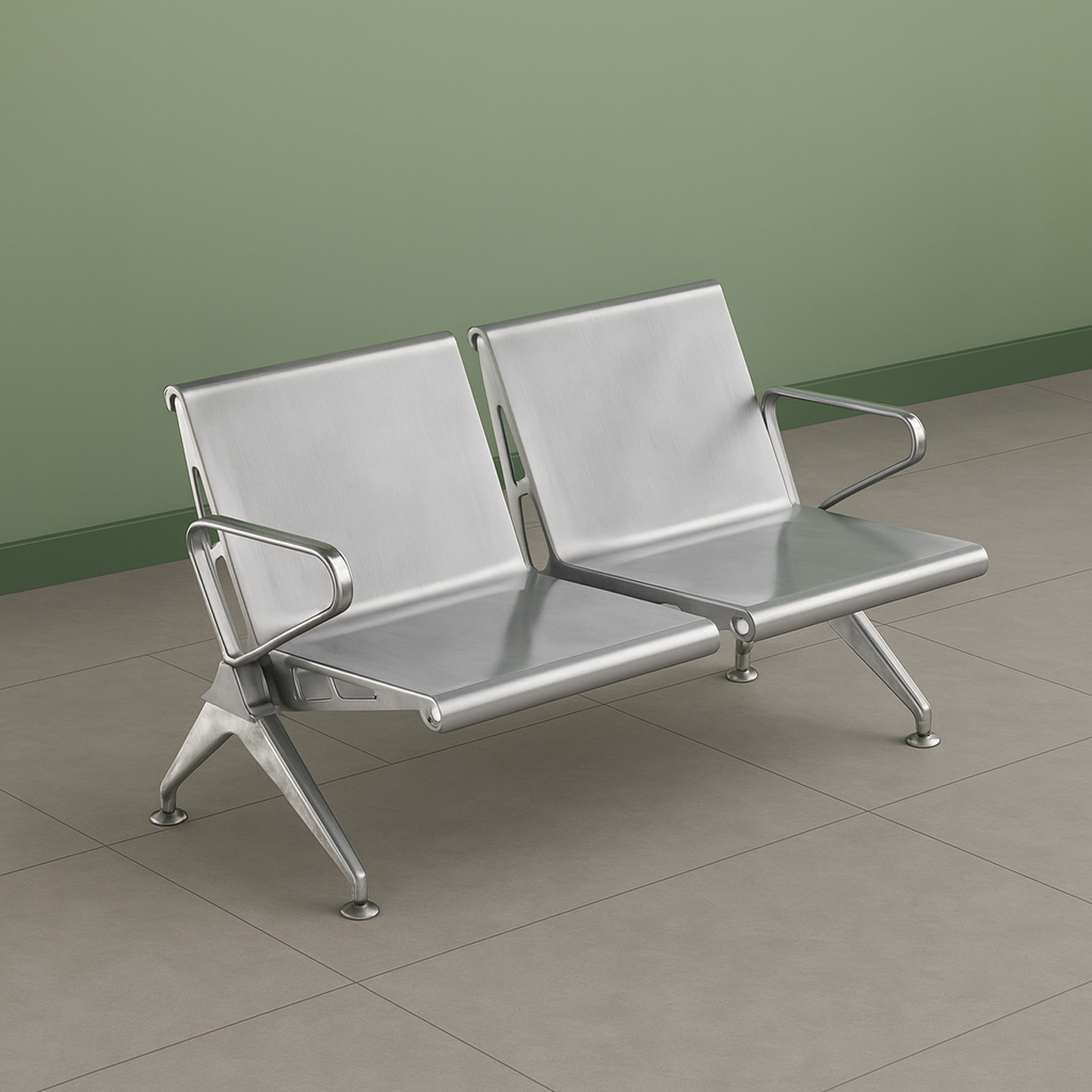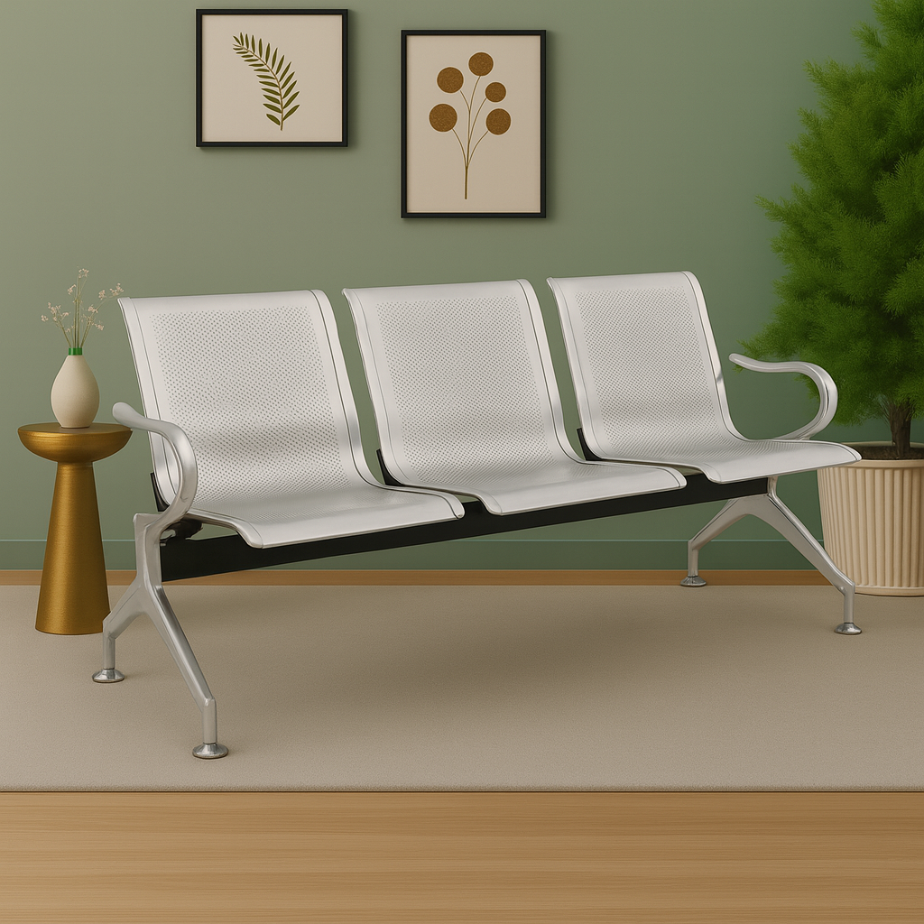 The GRACE-3 model is a robust 3-seater stainless steel waiting sofa, built with SS 202 grade arms and legs. Its powder-coated, perforated seat and back offer both ventilation and long-lasting durability—making it ideal for high-footfall spaces like hospitals, clinics, bus terminals, and reception lounges.