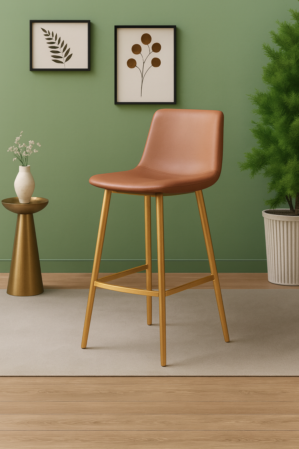 Add a touch of luxury to your cafeteria or bar space with the UGC-032 Bar Stool. Designed with a sleek SS 202 stainless steel pipe frame and premium gold plating, this stool combines elegance with durability. The ergonomic seat and back are wrapped in high-quality leatherette tapestry, ensuring both comfort and style. Ideal for contemporary interiors, this stool is perfect for cafés, bistros, lounges, and modern restaurants.