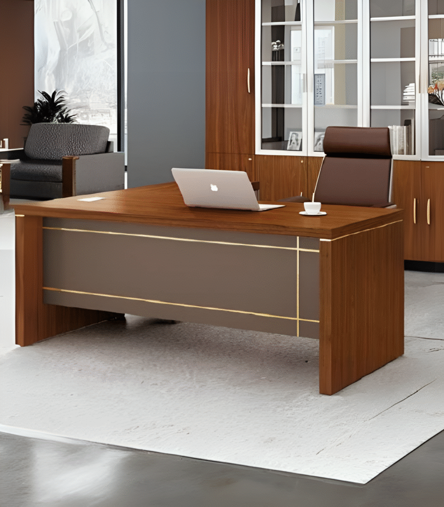 The UGD-016 is a modern executive desk crafted for simplicity and efficiency. With its elegant wood finish top, contrasting MS leg frame, and built-in modesty panel, this desk brings both stability and sophistication to any workspace.