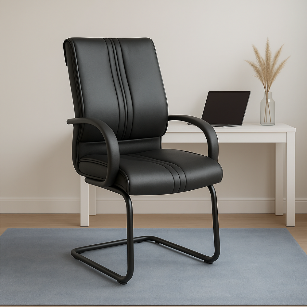 The UGE-017 is a sturdy and stylish visitor chair designed to offer a welcoming and professional seating experience in offices, reception areas, and meeting rooms. Upholstered in premium leatherette tapestry, it brings a sleek look while offering cushioned comfort.