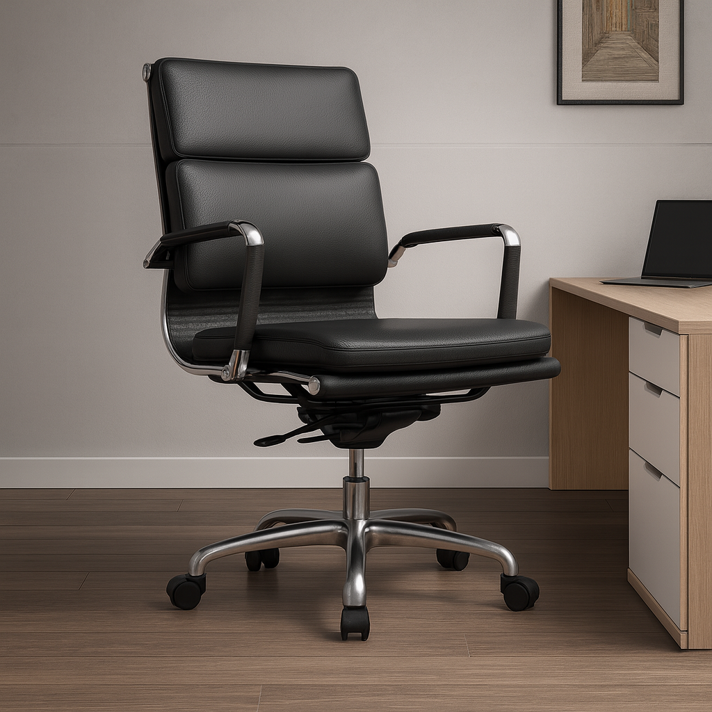The UGE-024 is a sleek and ergonomic medium back office chair designed to offer a perfect balance of style, posture support, and professional comfort. Crafted with a chrome-plated pipe frame and arms, it adds a modern, premium touch to any workspace.