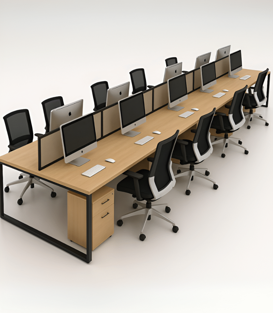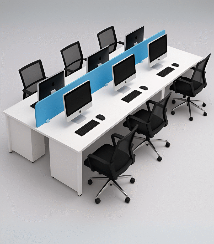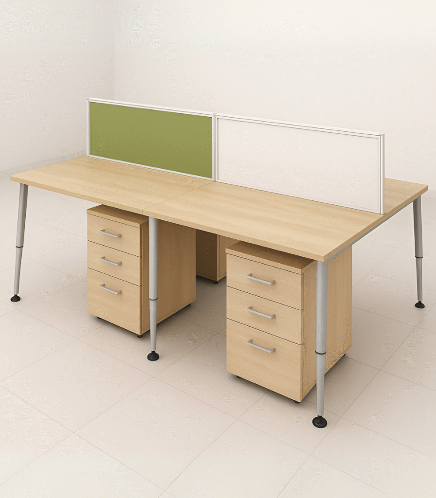 The UGM-013 workstation is designed for compact team environments where clean design and efficient workspaces matter. This dual-seater table offers vibrant lacquered glass dividers and a durable pre-laminated particle board top – perfect for startups, small teams, or task-focused stations.