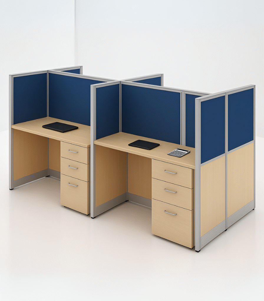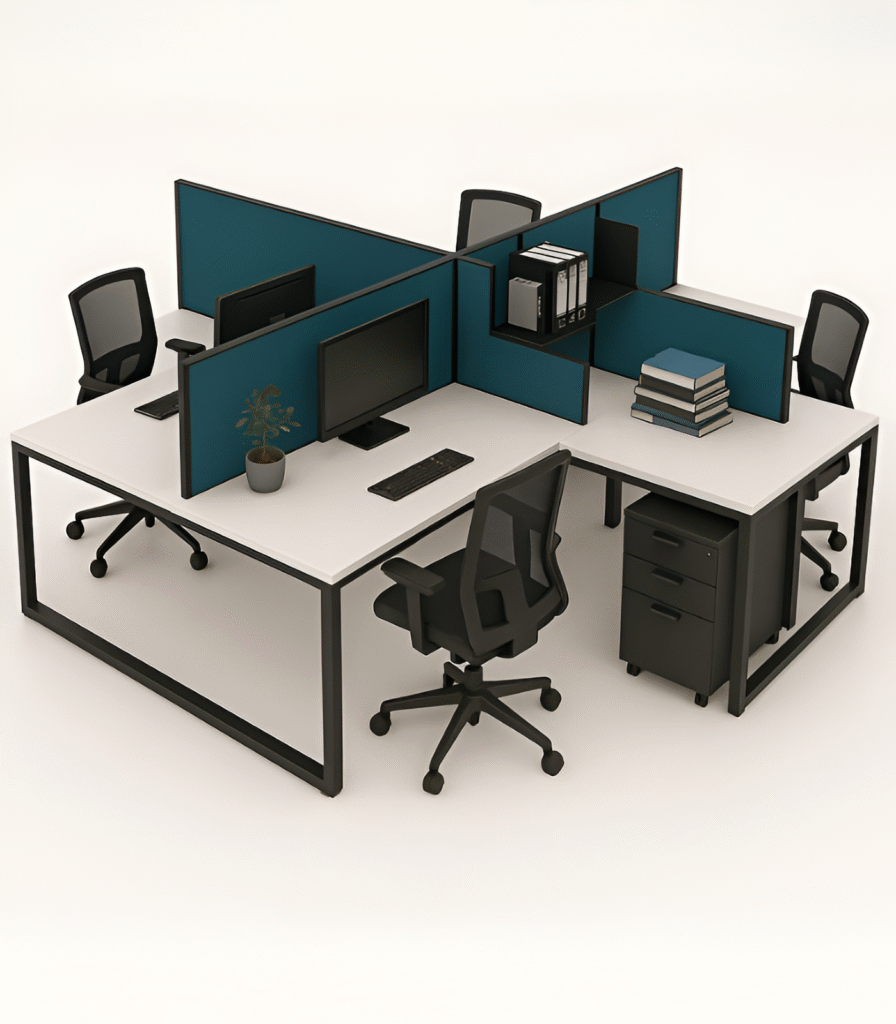 The UGM-014 is a space-saving back-to-back workstation ideal for growing teams and compact office layouts. Designed with a modern combination of magnetic fabric and white glass screens, it creates the perfect balance between aesthetics and practicality. With powder-coated chrome legs and a clean top surface, this model fits perfectly into any professional environment.