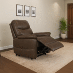 UGRT-007 is a full-length reclining chair with plush cushioning and a classic brown leatherette finish. Designed for maximum back and leg support, it offers a perfect retreat for relaxation in both personal and professional spaces.